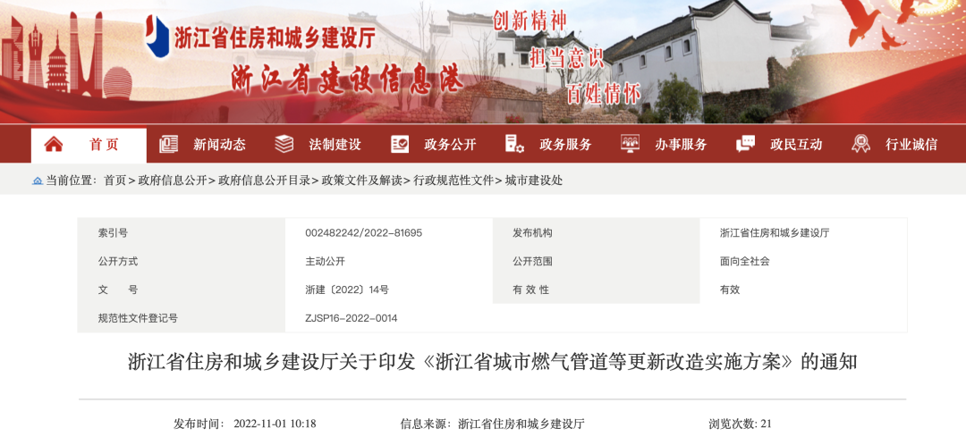 3年改造1085.5公里燃?xì)夤艿?,《浙江省城市燃?xì)夤艿赖雀赂脑鞂?shí)施方案》出臺(tái)