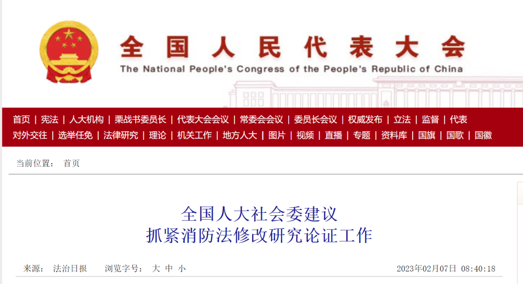 近日,全國(guó)人大社會(huì)委發(fā)布公告,建議有關(guān)部門(mén)按照黨中央關(guān)于深化消防執(zhí)法改革、消防救援隊(duì)伍改革的決策部署,結(jié)合落實(shí)《“十四五”國(guó)家消防工作規(guī)劃》,針對(duì)新形勢(shì)下消防工作遇到的新情況、新問(wèn)題以及近年來(lái)重特大火災(zāi)暴露的突出問(wèn)題,抓緊對(duì)消防法修改的研究論證工作,條件成熟時(shí),建議納入立法規(guī)劃或立法計(jì)劃。