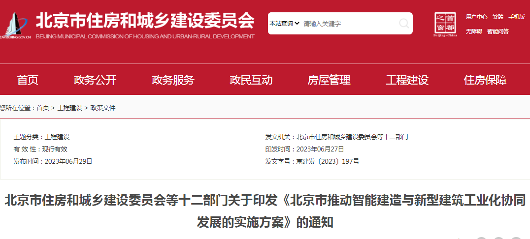 北京市推動(dòng)智能建造與新型建筑工業(yè)化協(xié)同發(fā)展的實(shí)施方案