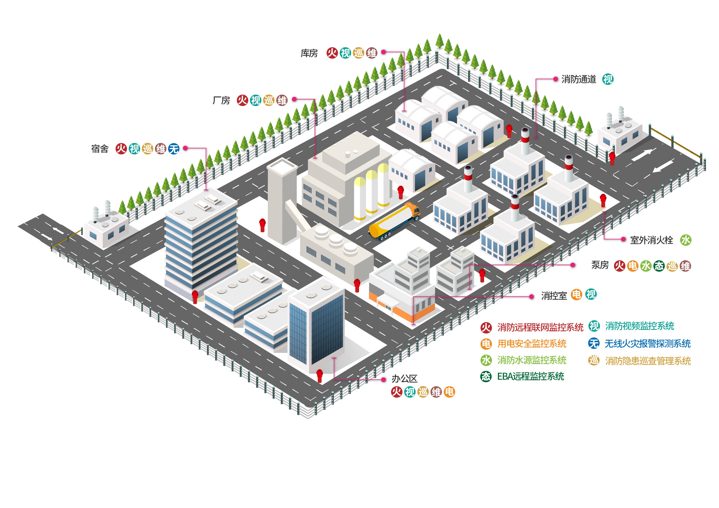 針對(duì)園區(qū)、廠區(qū)、廠房等場(chǎng)景,尼特制定了園區(qū)智慧消防解決方案,通過安裝用戶傳輸裝置、智慧用電、消防水源監(jiān)控、設(shè)備狀態(tài)監(jiān)控器、視頻監(jiān)控等智能化設(shè)備,實(shí)現(xiàn)安全隱患的提前發(fā)現(xiàn)、干預(yù)、處理,極大提高了園區(qū)消防工作效率,降低了人員成本,全面促進(jìn)了信息化與園區(qū)消防業(yè)務(wù)工作的深度融合。
