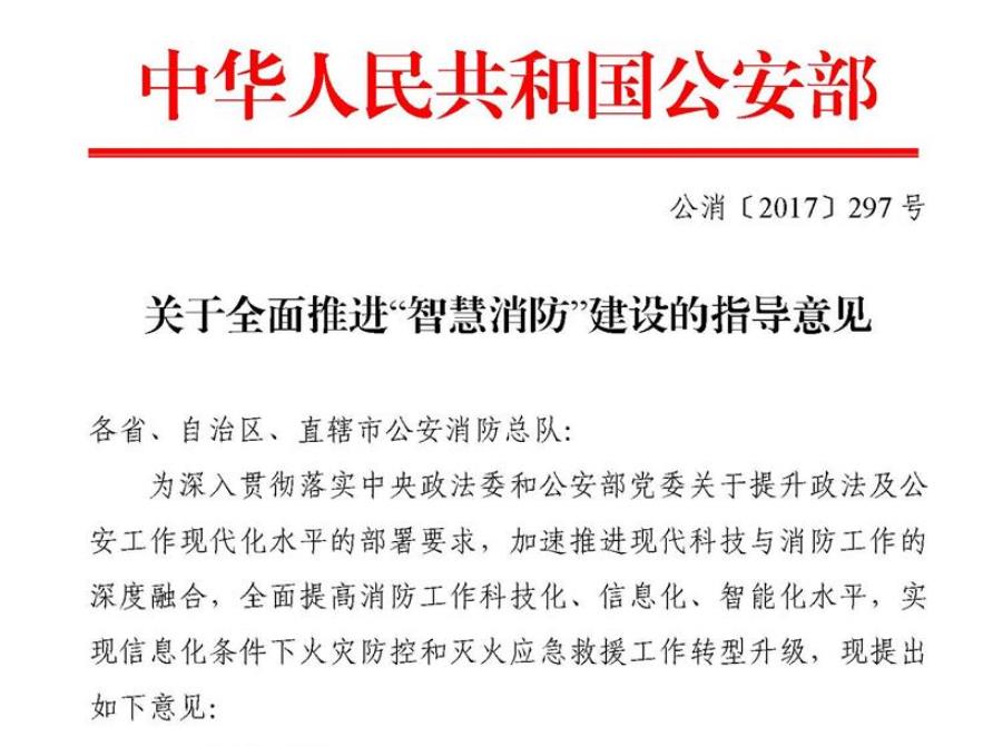 重大火災(zāi)事故的發(fā)生,讓中國社會的目光聚焦消防,相關(guān)部門更是從上至下推出了一系列指導(dǎo)意見及整改文件,多層次對消防安全保障提出了新要求,并將智慧消防作為城市安全發(fā)展重要建設(shè)內(nèi)容納入智慧城市總體規(guī)劃。