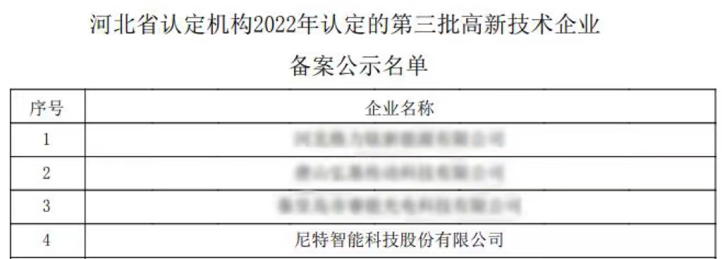 成立以來(lái),尼特多次通過(guò)高新技術(shù)企業(yè)認(rèn)定。2022年再次獲得高新技術(shù)企業(yè)認(rèn)證,不僅是對(duì)尼特在技術(shù)創(chuàng)新、產(chǎn)品研發(fā)方面取得的成果的高度認(rèn)可,也充分說(shuō)明了尼特在自主知識(shí)產(chǎn)權(quán)、技術(shù)創(chuàng)新研發(fā)的發(fā)展水平,對(duì)進(jìn)一步推動(dòng)技術(shù)創(chuàng)新工作,提升自主研發(fā)管理能力,加速技術(shù)成果轉(zhuǎn)化,提高核心競(jìng)爭(zhēng)力和可持續(xù)發(fā)展能力具有重要意義,為進(jìn)一步貫徹尼特“創(chuàng)新驅(qū)動(dòng)發(fā)展”發(fā)展戰(zhàn)略奠定堅(jiān)實(shí)基礎(chǔ)。