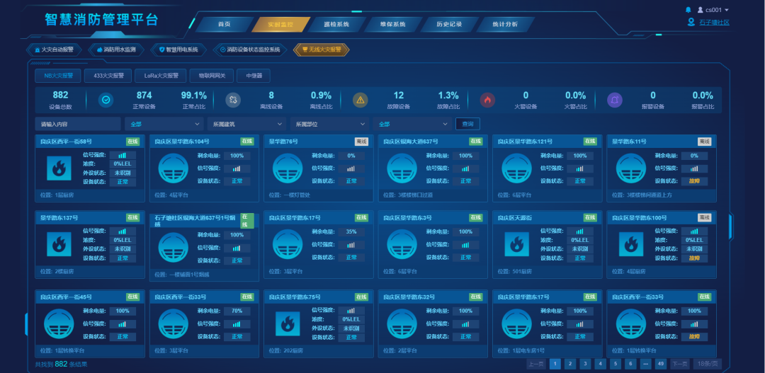 利用用戶信息傳輸裝置與城中村、老舊小區(qū)原有的火災(zāi)自動報警主機進(jìn)行對接,實時采集各種火災(zāi)報警、建筑消防設(shè)施運行狀態(tài),通過定制搭建的尼特云智慧消防管理平臺實現(xiàn)對消防安全狀況的全方位感知、全過程監(jiān)控,一張圖”掌握火災(zāi)風(fēng)險情況,也為火災(zāi)調(diào)查提供嚴(yán)謹(jǐn)?shù)目茖W(xué)依據(jù)。