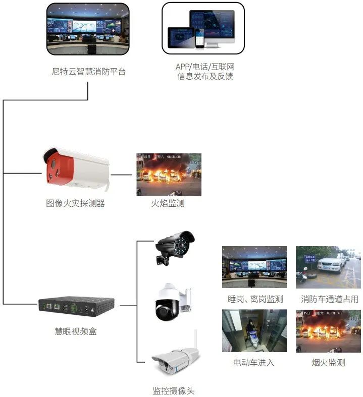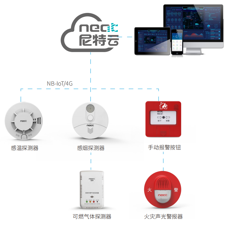 基于物聯(lián)網(wǎng)等前沿技術(shù)手段,尼特利用物聯(lián)網(wǎng)、云計(jì)算、人工智能等最新技術(shù),精準(zhǔn)定位各類校園的消防安全隱患,采用獨(dú)立聯(lián)網(wǎng)的智能探測(cè)設(shè)備,實(shí)時(shí)感知警情信息并上傳至尼特云智慧消防管理平臺(tái),平臺(tái)將前端探測(cè)設(shè)備發(fā)現(xiàn)的預(yù)警信息,通過(guò)電話語(yǔ)音、短信、APP推送,及時(shí)將火警信息推送至校園安全值班人員、后勤部門、監(jiān)管單位終端,可第一時(shí)間現(xiàn)場(chǎng)復(fù)核,實(shí)現(xiàn)火情等安全隱患的早預(yù)警、早發(fā)現(xiàn)、早撲救,達(dá)到少損失、少傷亡的目的。