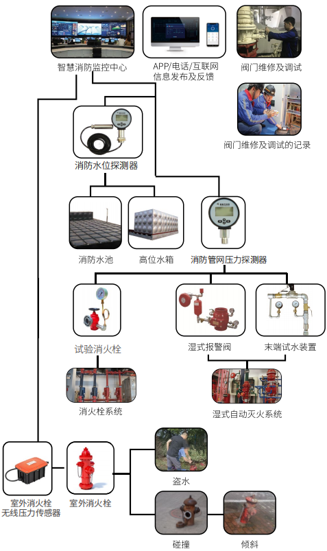 3、對(duì)于公共區(qū)域的室內(nèi)外安裝的消防水系統(tǒng)、排煙系統(tǒng),可以通過(guò)消防水位探測(cè)器、消防管網(wǎng)壓力探測(cè)器以及消防設(shè)備狀態(tài)監(jiān)控器實(shí)現(xiàn)消防水管網(wǎng)壓力、液位等重要狀態(tài)的檢查,同時(shí)可以通過(guò)遠(yuǎn)程巡檢的方式,提高人工巡檢效率,降低成本;