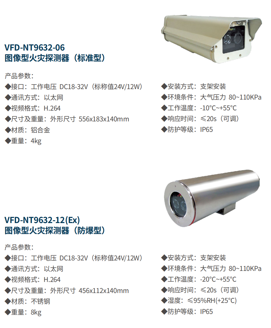 依據(jù)《GB15631-2008特種火災(zāi)探測器》標(biāo)準(zhǔn)設(shè)計,圖像型火災(zāi)探測器采用圖像火焰識別算法,以可見光和近紅外光譜探測技術(shù),無需接觸火焰,即可捕獲現(xiàn)場火災(zāi)信息和圖像信息,,具有響應(yīng)速度快、可視化、無接觸、抗干擾能力強(qiáng)和性價比高等特點(diǎn),高效實(shí)現(xiàn)對被保護(hù)區(qū)域的早期火焰探測!