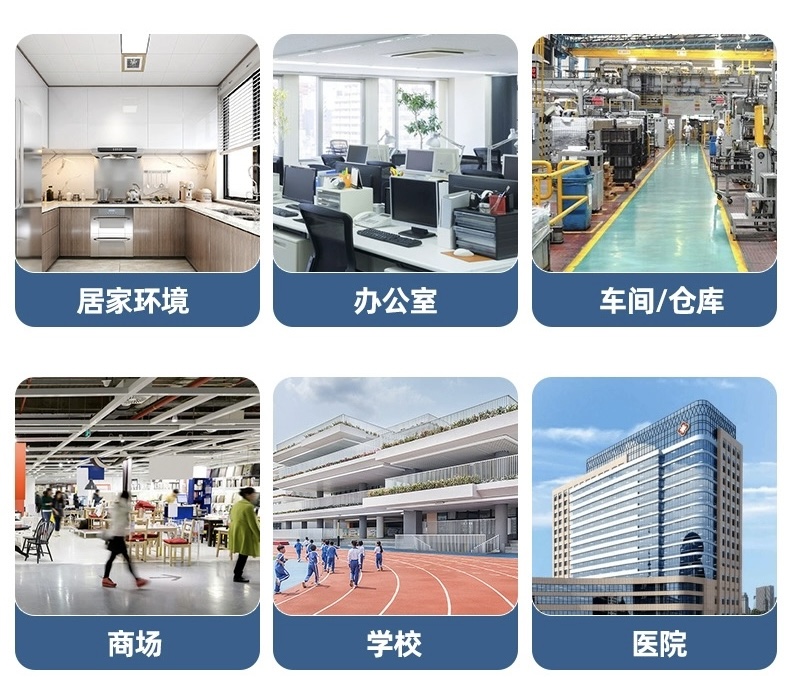 除“三小”場(chǎng)所外,可廣泛應(yīng)用于家庭住宅、工業(yè)廠房、寫(xiě)字樓、倉(cāng)庫(kù)、商場(chǎng)、賓館、圖書(shū)館、教學(xué)樓、銀行等密集型場(chǎng)所。