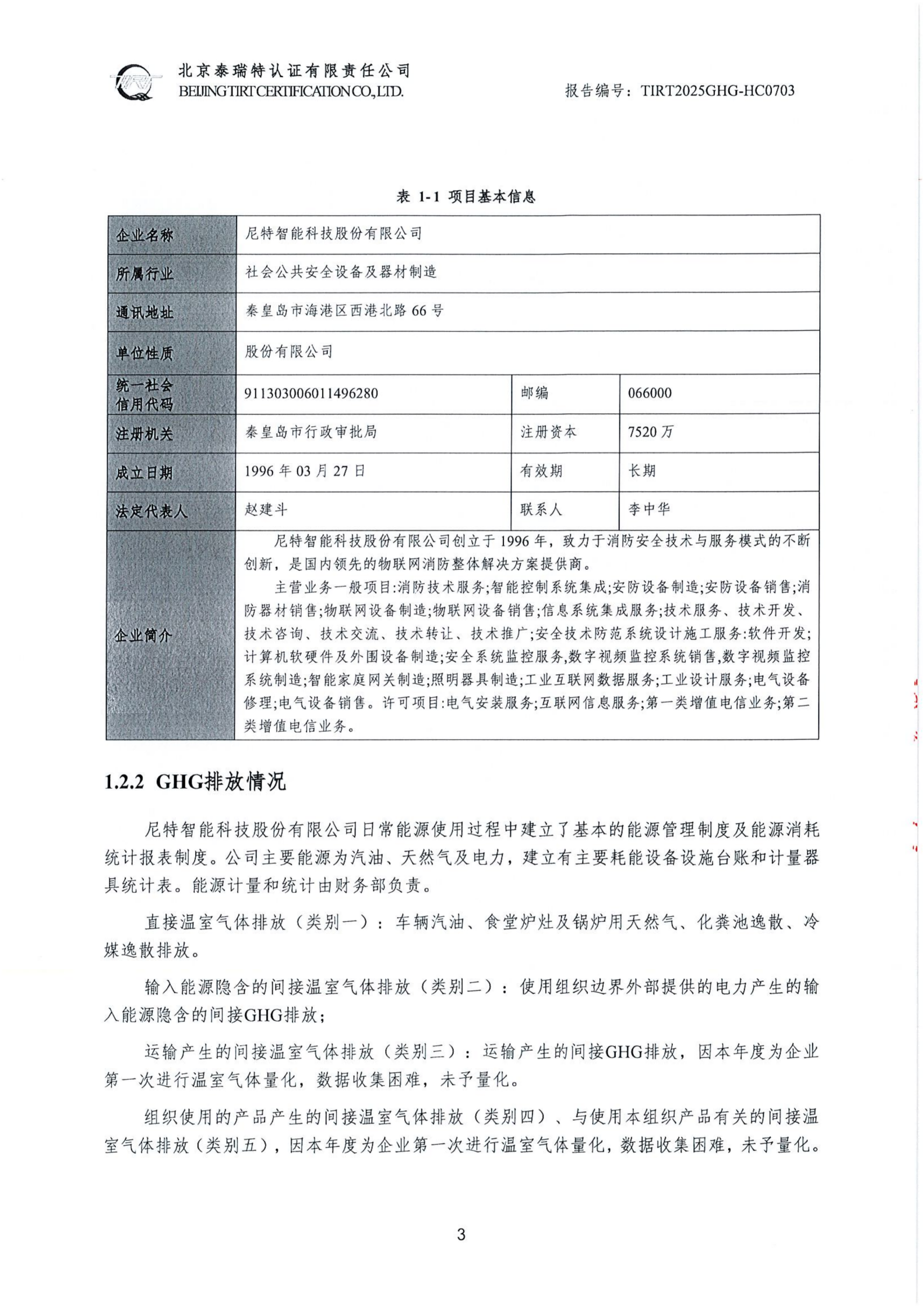 尼特智能科技股份有限公司溫室氣體核查報告