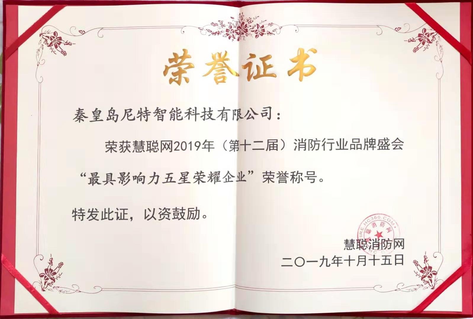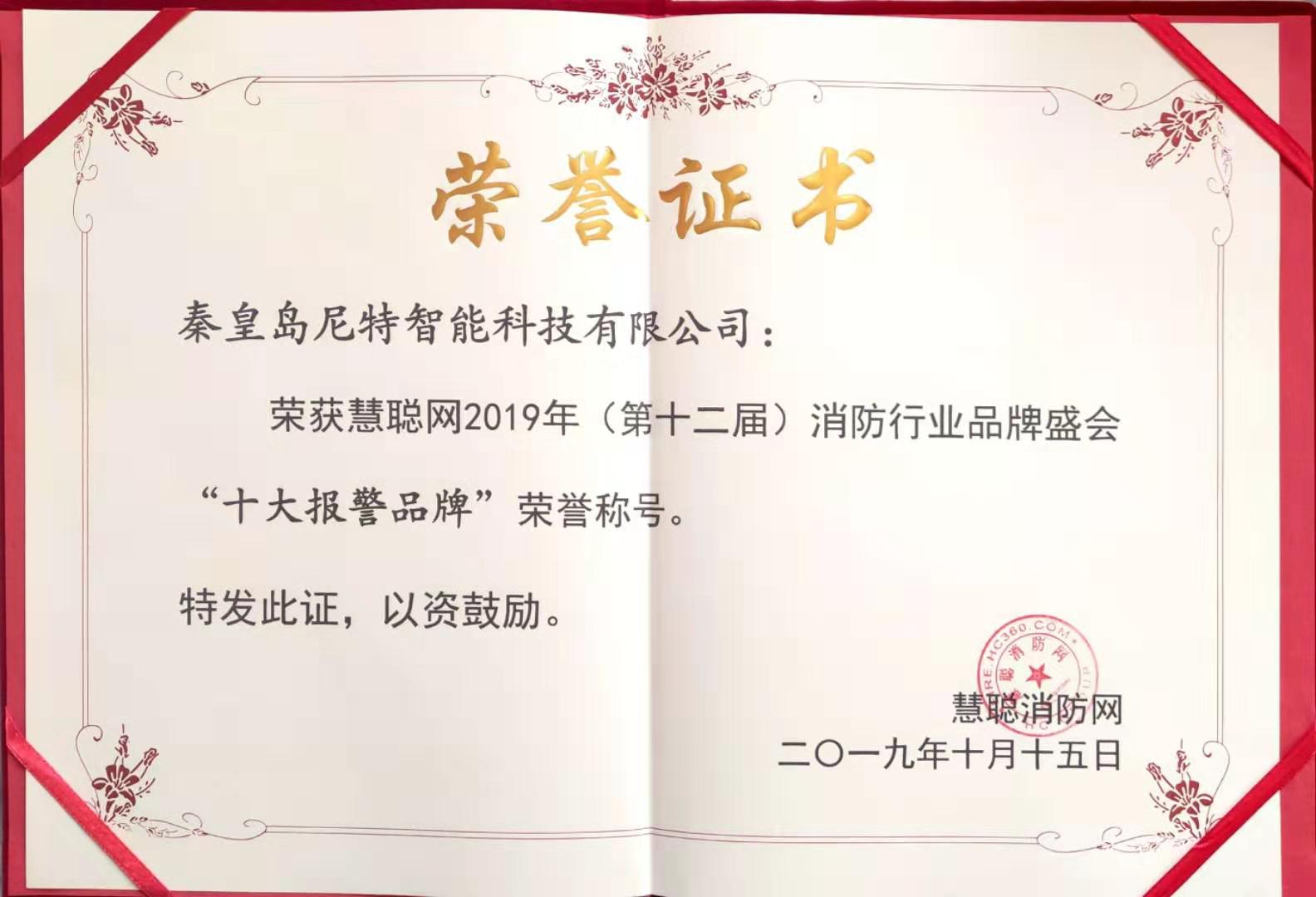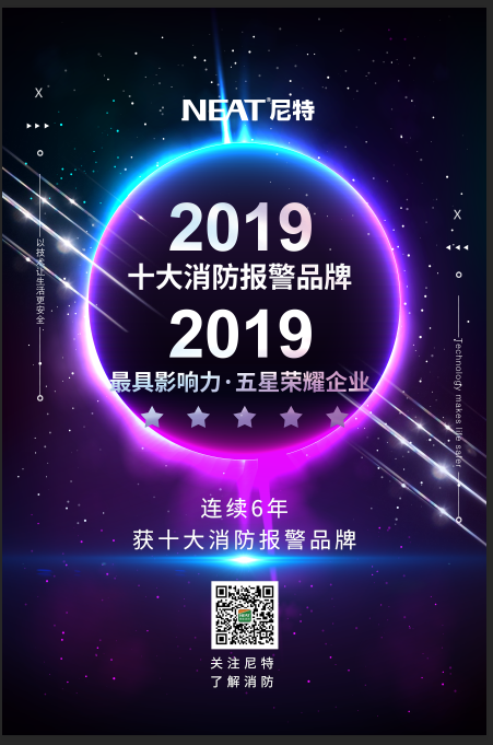 2019年10月15日,“2019(第十二屆)中國消防行業(yè)品牌盛會”上,尼特再度被評選為【十大消防報警品牌】,并同時上榜【最具影響力·五星榮耀企業(yè)】,自2014年首登榜單以來,尼特已連續(xù)六年榮獲“十大品牌”殊榮。