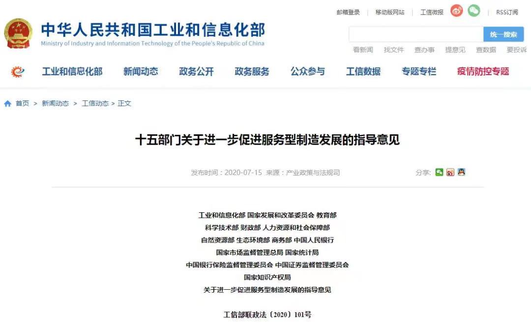 為貫徹黨中央、國務(wù)院關(guān)于推動先進(jìn)制造業(yè)和現(xiàn)代服務(wù)業(yè)深度融合,發(fā)展服務(wù)型制造的決策部署,推動制造業(yè)高質(zhì)量發(fā)展,工業(yè)和信息化部等部門聯(lián)合印發(fā)了《關(guān)于進(jìn)一步促進(jìn)服務(wù)型制造發(fā)展的指導(dǎo)意見》,明確指出,加快培育發(fā)展服務(wù)型制造新業(yè)態(tài)新模式,促進(jìn)制造業(yè)提質(zhì)增效和轉(zhuǎn)型升級。