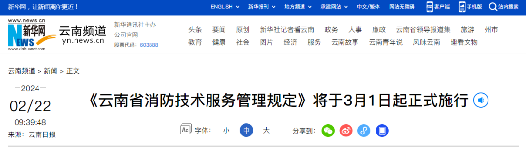 經(jīng)省政府常務(wù)會議通過,《云南省消防技術(shù)服務(wù)管理規(guī)定》(以下簡稱《規(guī)定》)將于3月1日起正式施行。 《規(guī)定》的修訂出臺,既是適應(yīng)消防執(zhí)法改革形勢的現(xiàn)實需要,又是補充完善全省消防...