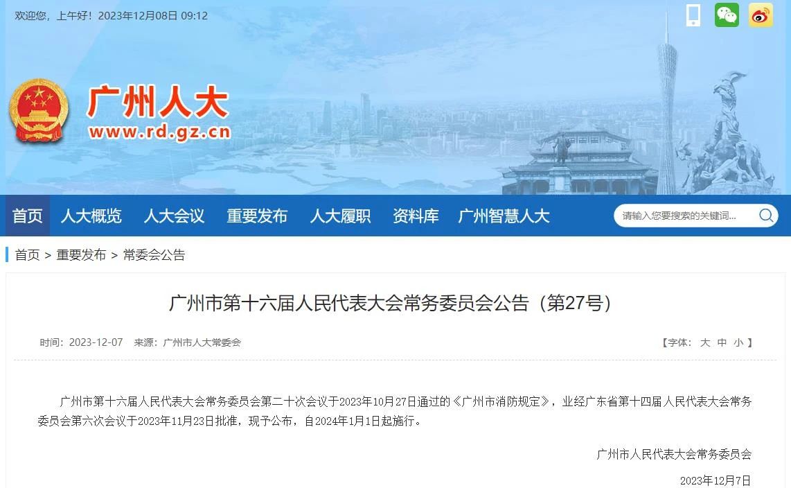 廣東省第十四屆人民代表大會常務(wù)委員會第六次會議審查了廣州市人民代表大會常務(wù)委員會報請批準(zhǔn)的《廣州市消防規(guī)定》,該規(guī)定與...
