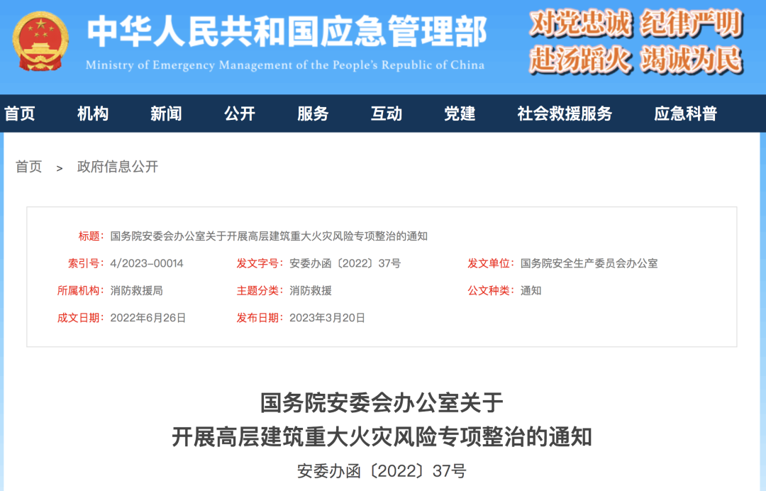 國務院安委會辦公室關于 開展高層建筑重大火災風險專項整治的通知 ...