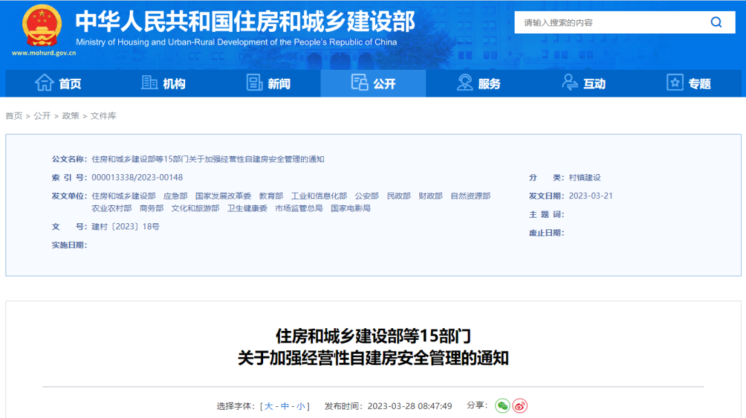 經(jīng)國務院同意,近日住房和城鄉(xiāng)建設部、應急部等15部門聯(lián)合印發(fā)了《關于加強經(jīng)營性自建房安全管理的通知》(以下簡稱《通知》),要求以習近平新時代中國特色社會主義思想...