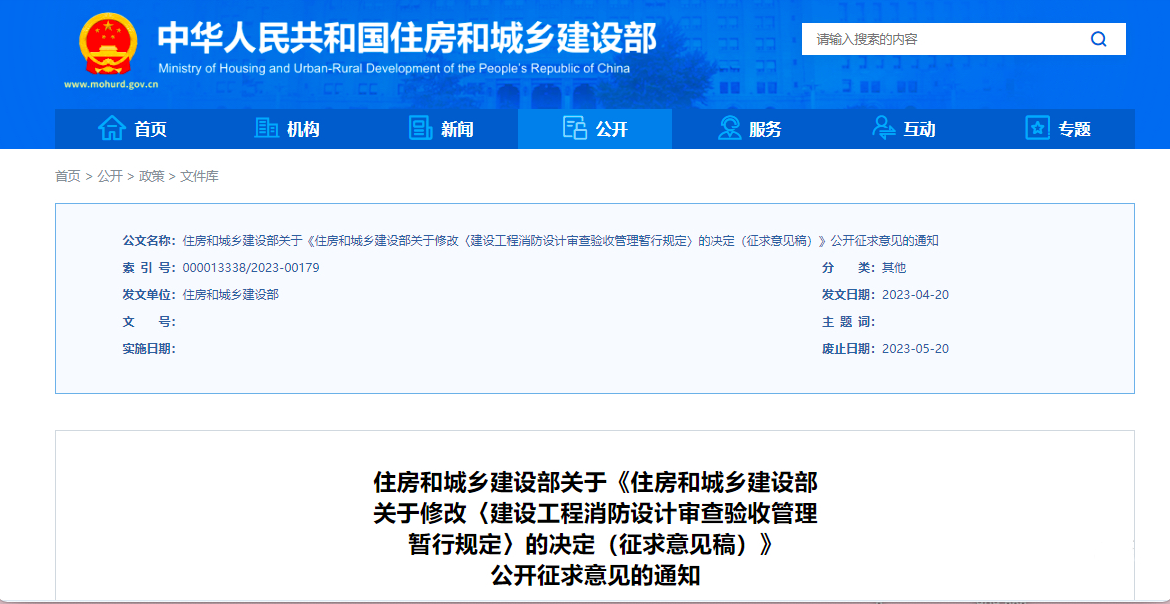 為了改進建設工程消防設計審查驗收管理,住房和城鄉(xiāng)建設部擬修改《建設工程消防設計審查驗收管理暫行規(guī)定》,起草了《住房和城鄉(xiāng)建設部關于修改〈建設工程消防設計審查驗收管理暫行規(guī)定〉...